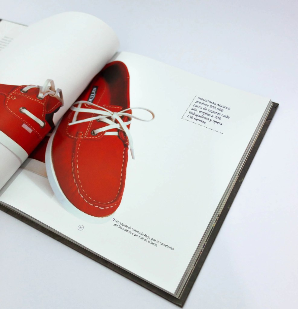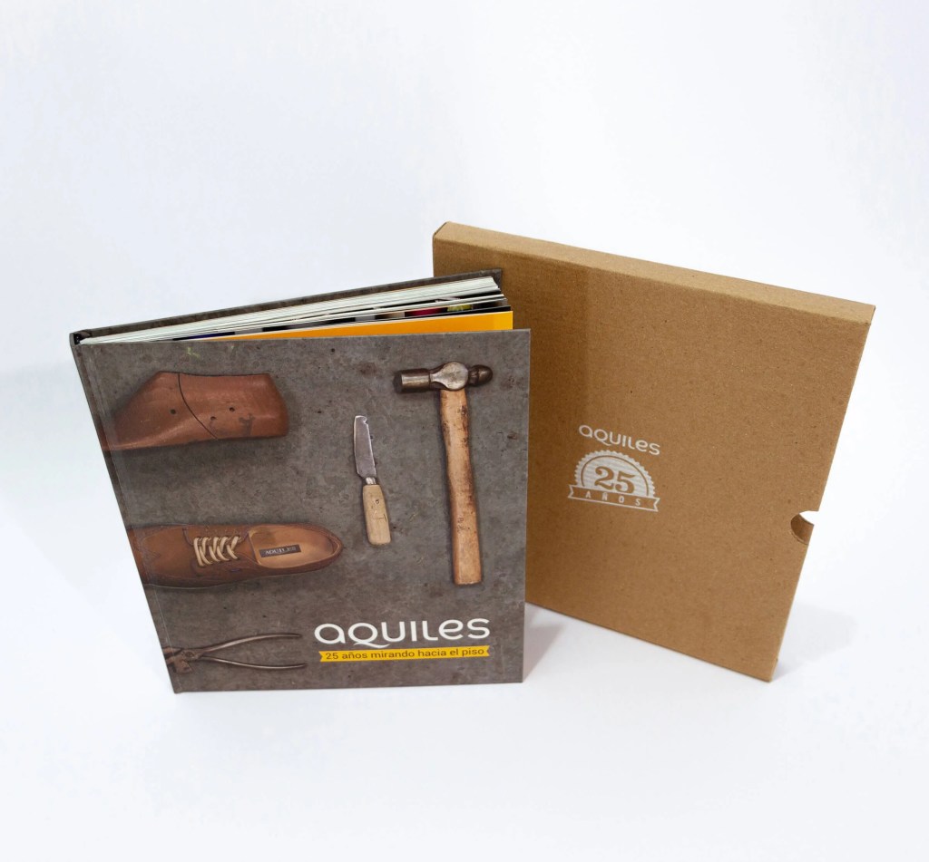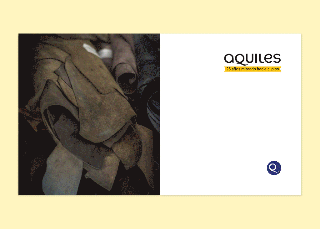 This book was created to commemorate the 25th anniversary of Aquiles Shoes, one of the most popular shoe stores in Colombia. Aquiles: 25 años mirando al piso narrates the origins, challenges and successes of the company, told by its owner. The book is composed of full-page photographs that illustrate production processes at the factory, and it portrays all the people involved in the company’s history. The contents are organized chronologically into eight chapters, each one containing an infographic-style page centred on a specific detail of every section. Photographs by Gabriel Leaño