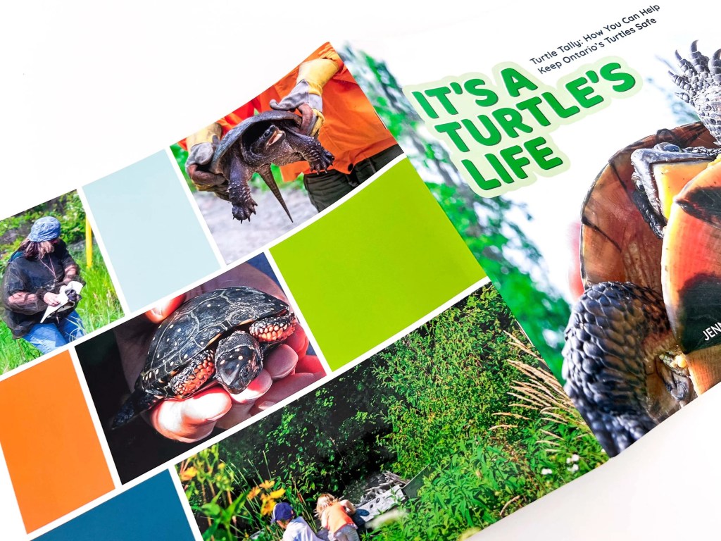 It’s a Turtle’s Life is a book collaboration between Adopt a Pond and the Toronto Zoo with the support of Centennial College for editorial work and book design. I was selected to create the visual concept for the publication and work on the layout from the first drafts to pre-press production. This book intends to introduce children to caring for and protecting the various species of turtles in Ontario.